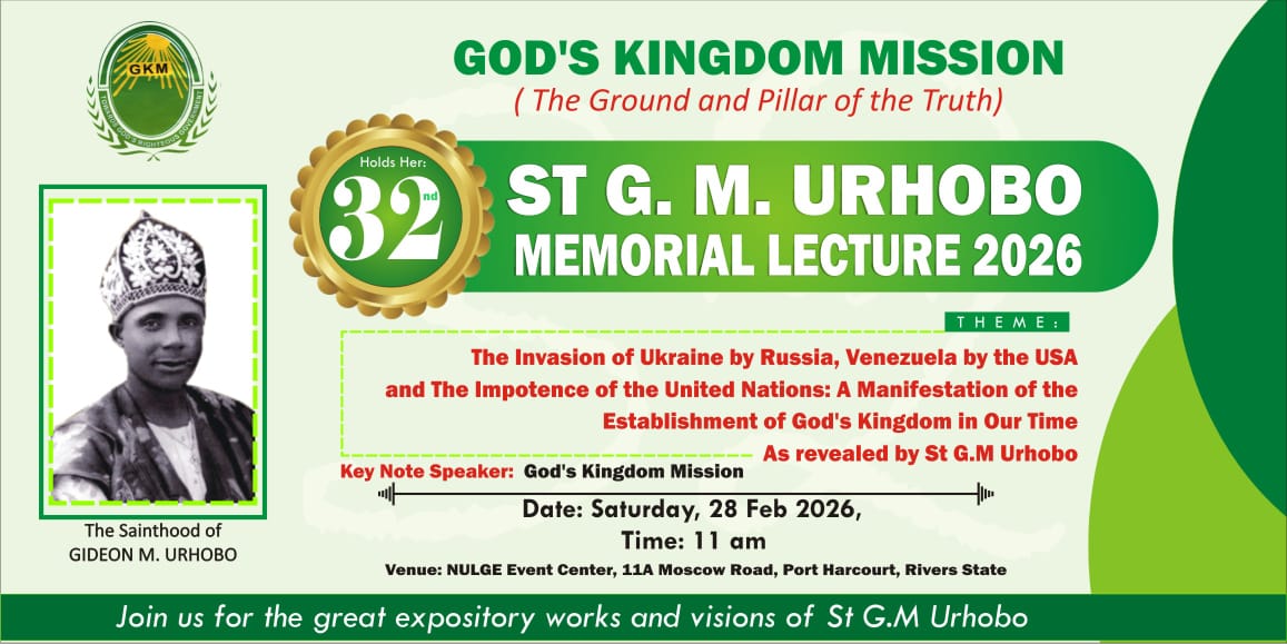 God’s Kingdom Mission (GKM) is a dynamic Christian Organisation that is dedicated to the propagation of the saving gospel of Jesus Christ as revealed to ST. G. M. URHOBO of blessed and eternal memory for the establishment of the Kingdom of God on earth as the only hope for suffering humanity and reaching out to God’s children wherever they are worldwide. Using all spiritual, human, and material resources to bring the people of the world into the light of truth in God’s Kingdom Mission which is a part and parcel of God’s Kingdom in this part of the world.